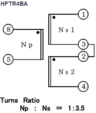 Proterial HFTR Isolation Transformers are designed for gate drive circuits and feature a ferrite core. The small, high-efficiency isolation transformers offer low core loss and high saturation flux density. Turns ratio options are 1:2 for HFTR3DA and HFTR2DA-B1, 1:3.5 for HFTR4BA and HFTR3BB, and 1:2.3:0.43 for HFTR4CA. Additional features include 2.5kVAC, 3.75kVAC, or 5kVAC withstand voltage and a creepage distance ranging from 1.5mm to 12mm. Proterial HFTR Isolation Transformers comply with AEC-Q200 standards.Features